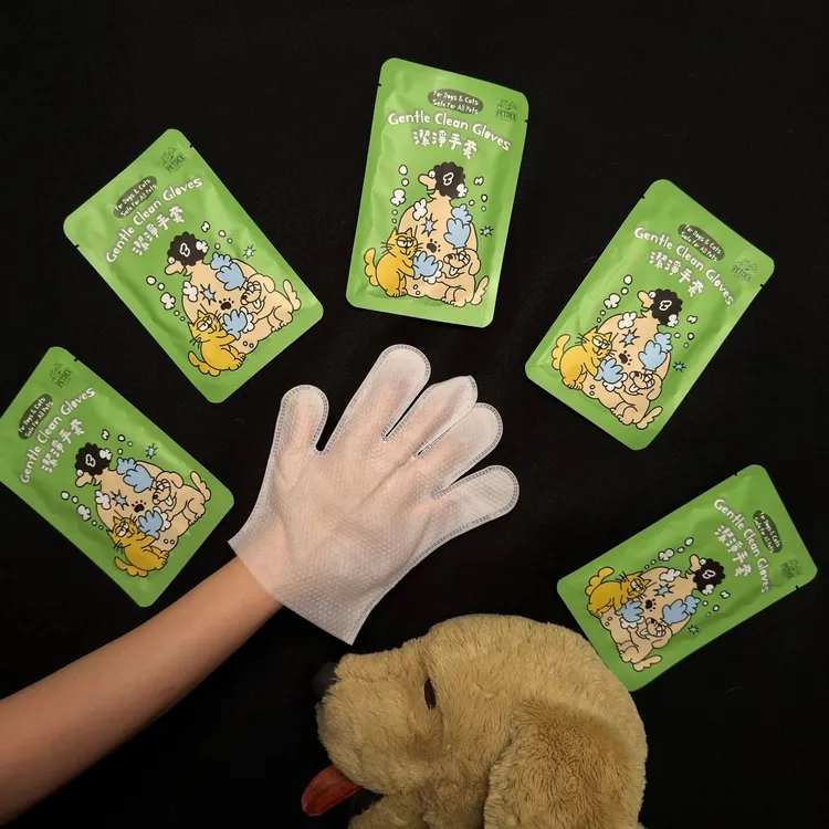 選用珍珠紋無紡布,透過凹凸紋路有效「抓取」髒污與浮毛;搭配五指手套設計,能精準深入毛孩指縫、肉墊、耳道與眼周等細節,讓清潔效率翻倍。