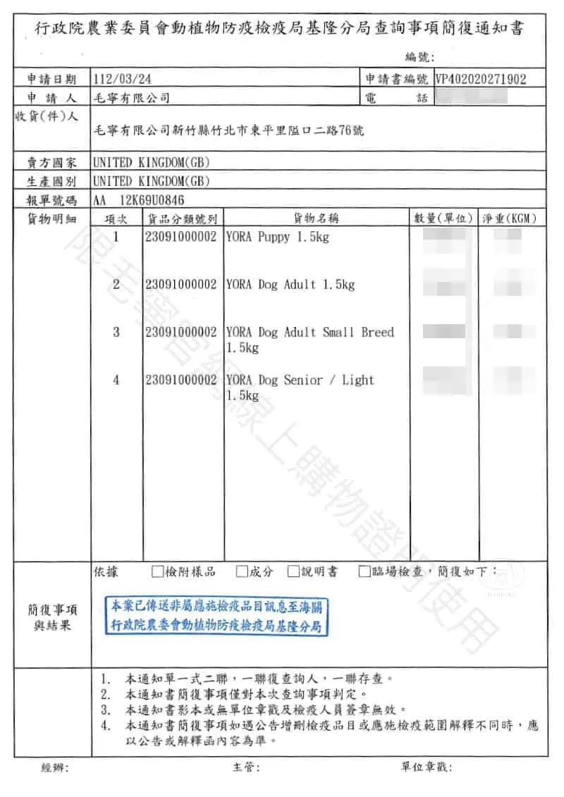 粗蛋白23%、粗脂肪13%、粗纖維5%、粗灰分5%、奧米加6 3.2%、奧米加3 0.5%、鈣0.8%。