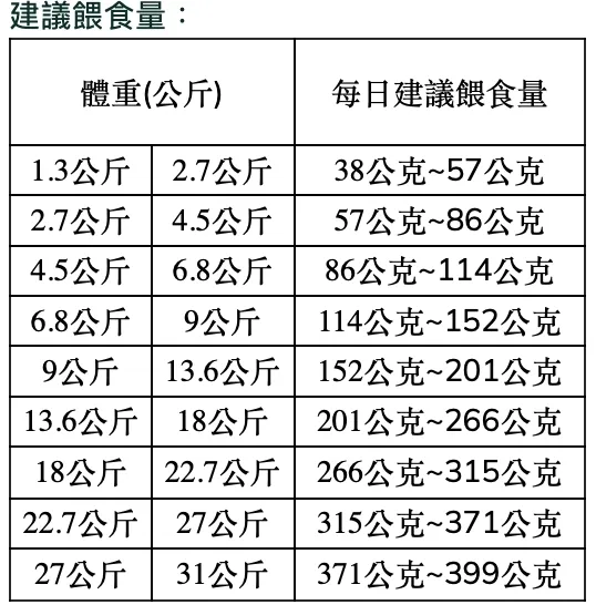 粗蛋白質不低於27、粗脂肪不低於15%、粗纖維不高於5%、水分不高於9%、維他命E不低於225 IU/kg、牛磺酸不低於0.15%、Omega-3 不低於0.8%、Omega-6不低於3%、芽孢乳酸菌不低於500,000,000 CFU/454g