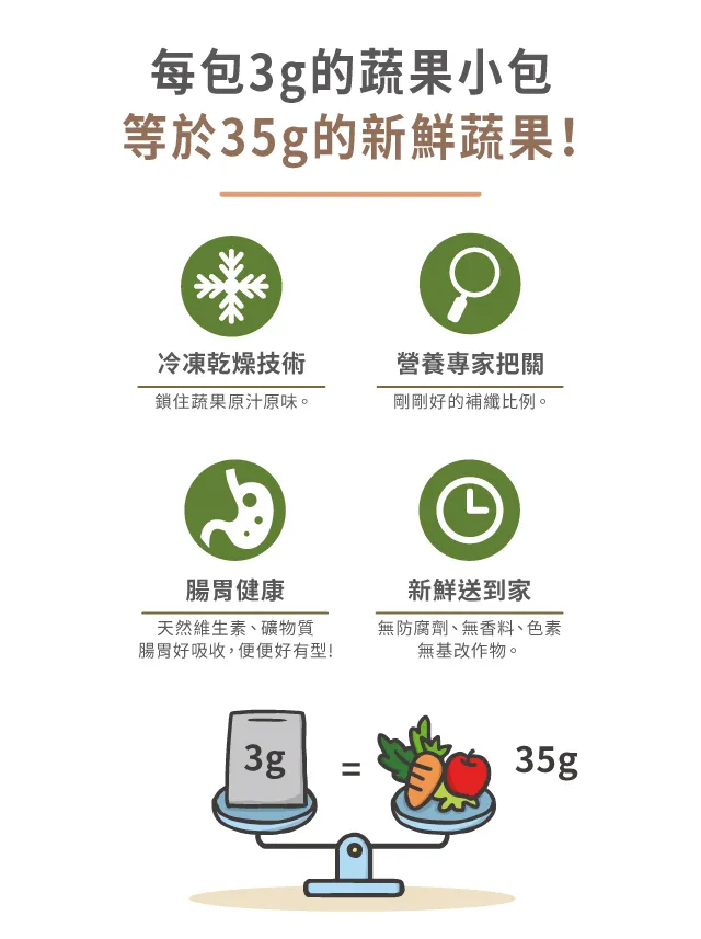 ◆ 富含七種以上蔬果,冷凍乾燥技術,鎖住營養!