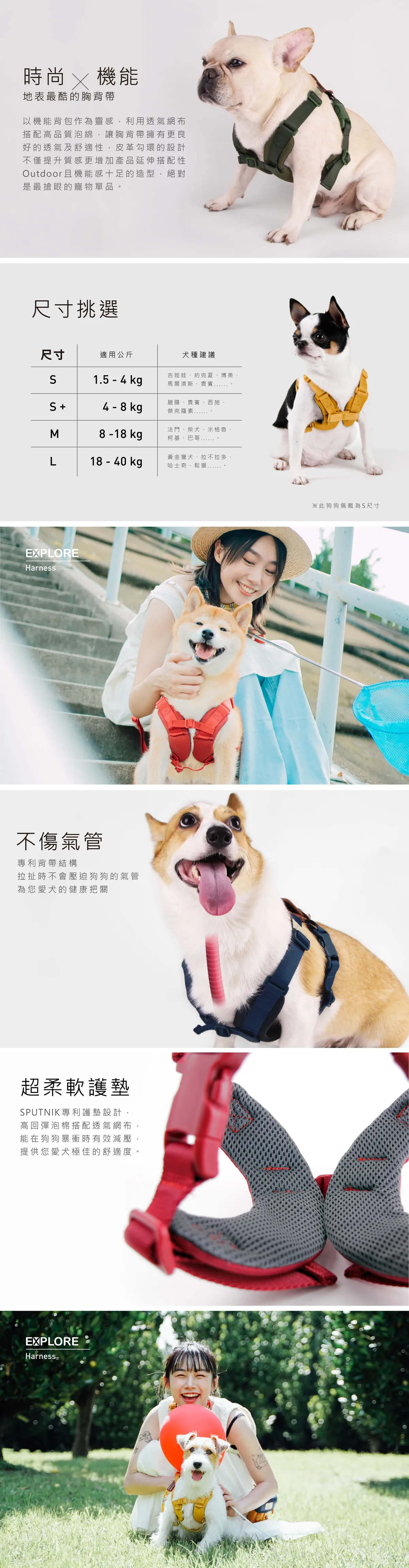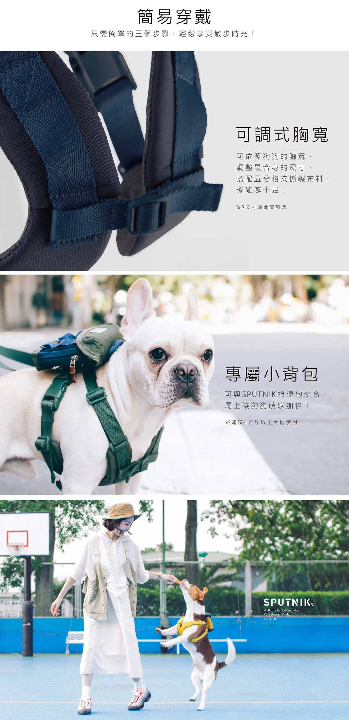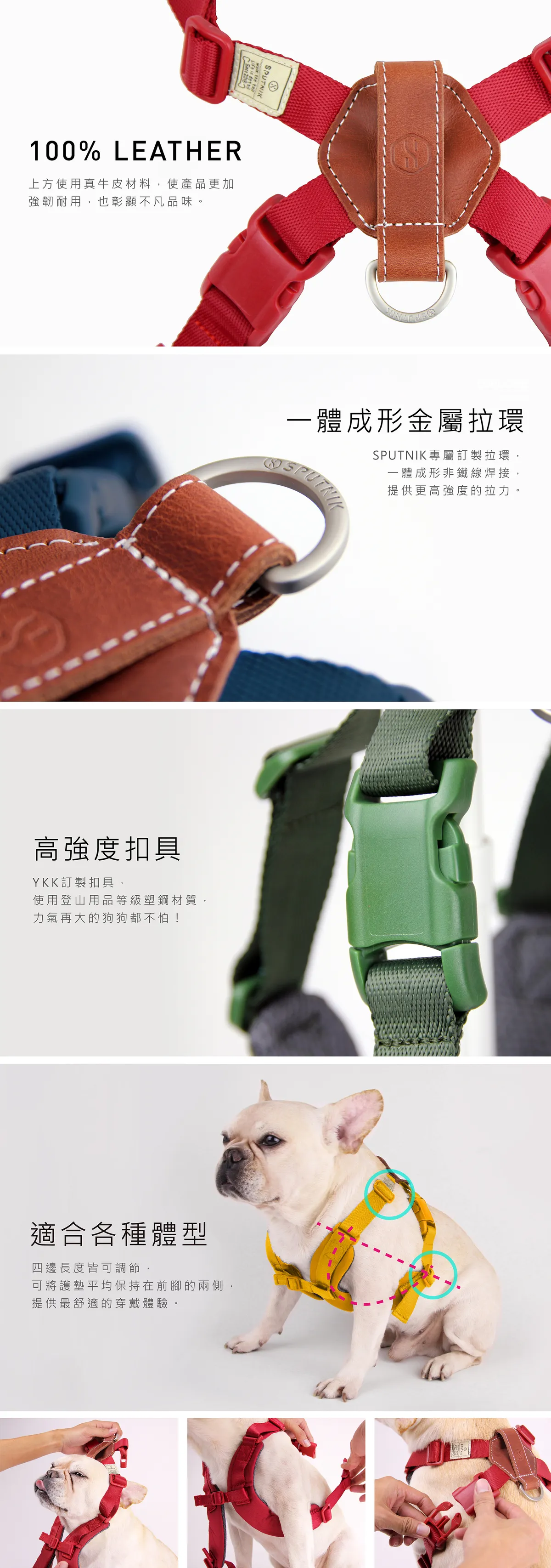 ③胸背帶皮革拉環為裝置拾便包(折疊碗)等用途,不宜主動拉扯,避免造成皮革縫線的損壞