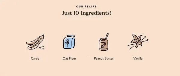 成分:燕麥粉、花生醬、角豆、香草、白米、燕麥、蔗糖蜜、椰子甘油、亞麻籽、檸檬酸