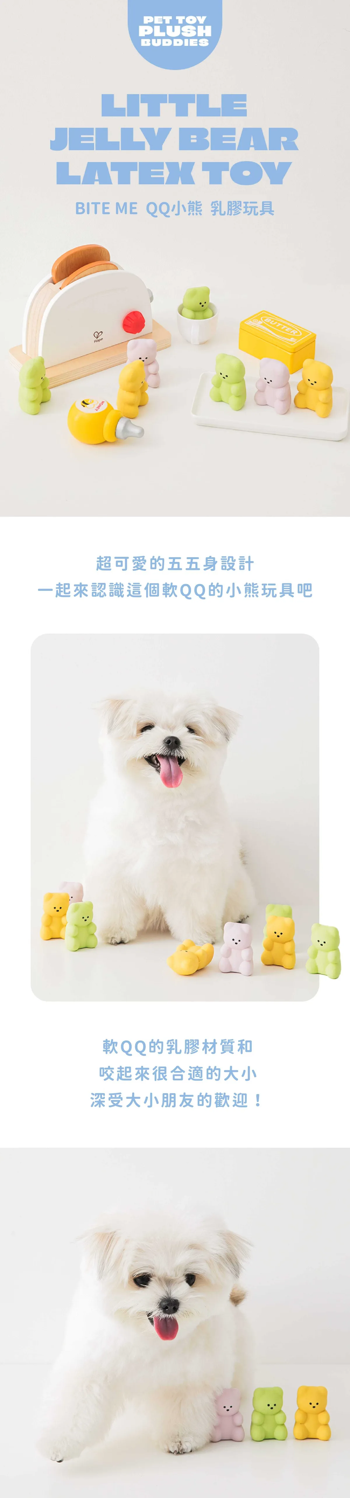 100%天然乳膠製成,超萌小熊軟糖造型,瞬間吸引毛孩目光!