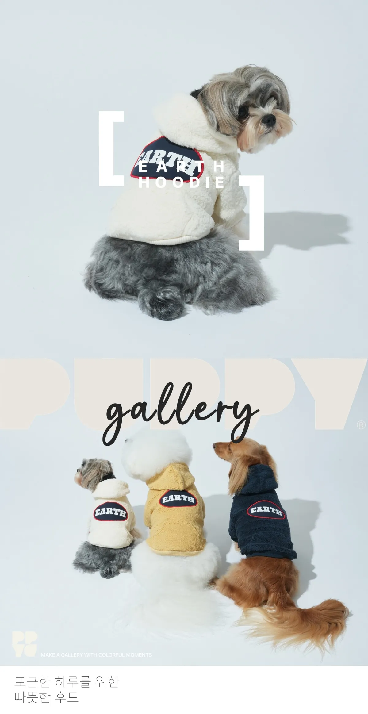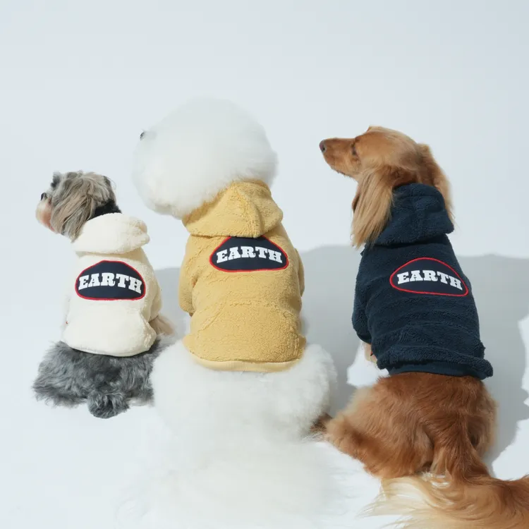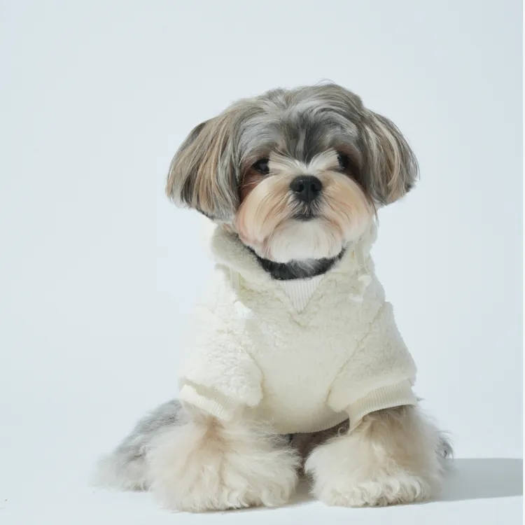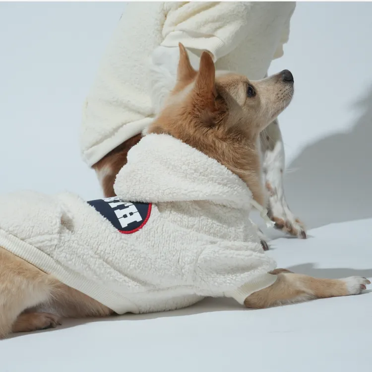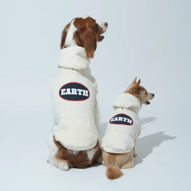 Puppy Gallery | EARTH抓絨連帽上衣 - 象牙白