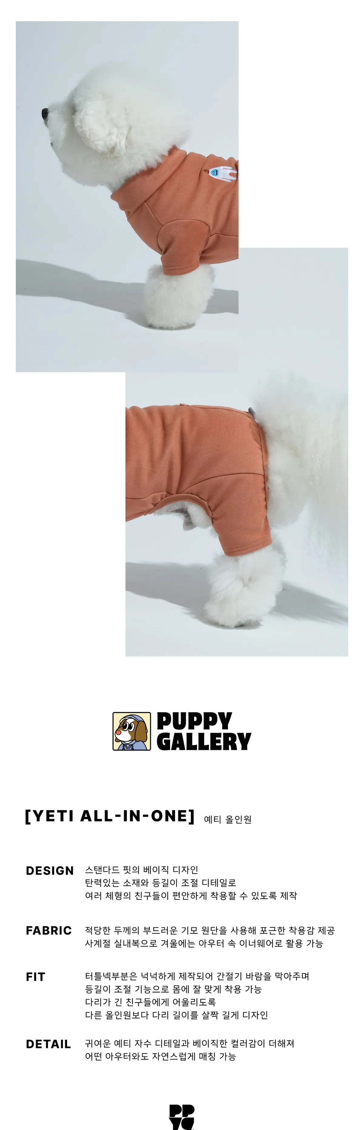 Puppy Gallery | 雪怪素面四腳衣 - 暖紅棕