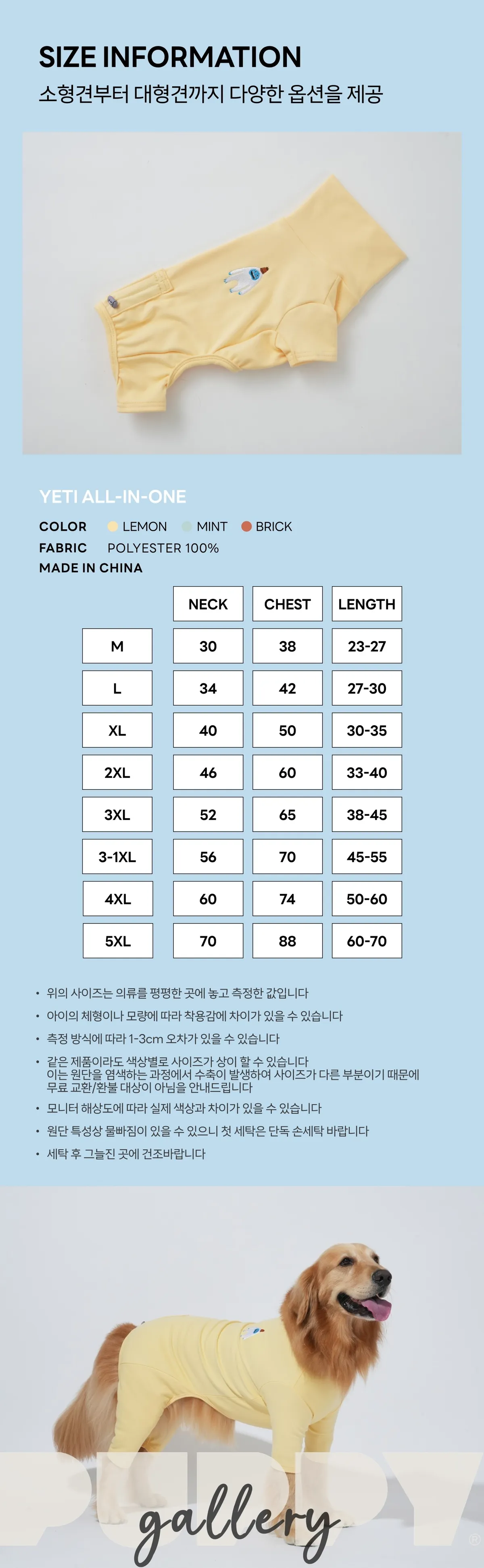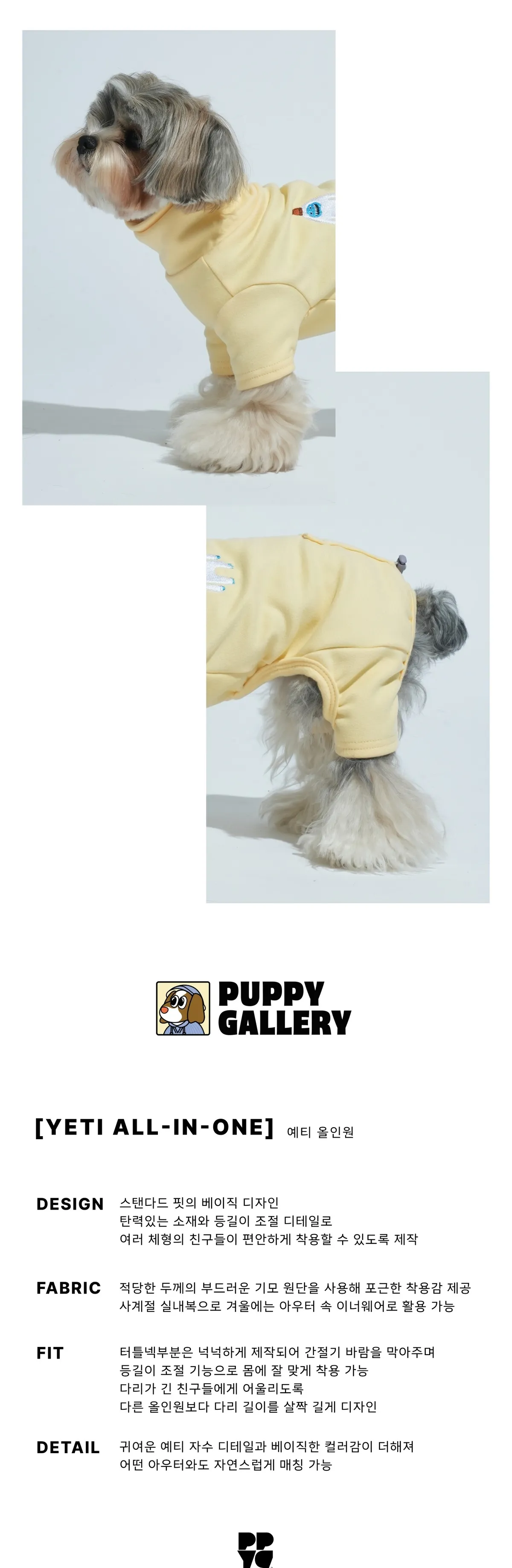 Puppy Gallery | 雪怪素面四腳衣 - 檸檬黃