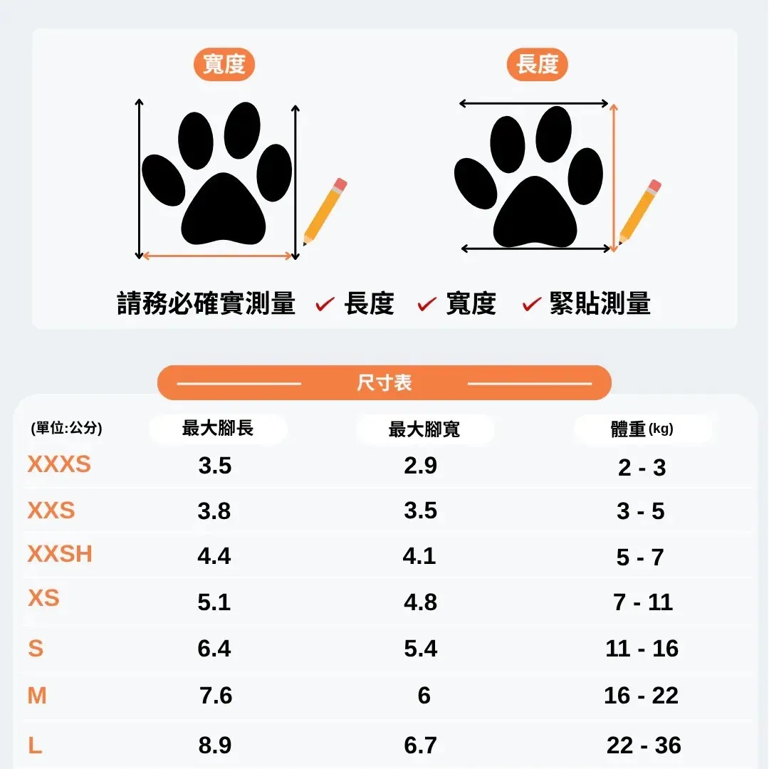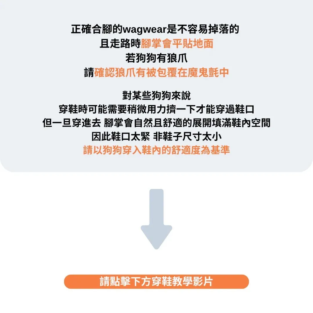 美國WagWellies® Mojave 專為炎熱乾燥天氣設計的寵物鞋✓ 有效保護毛孩腳掌不受高溫地面灼傷✓ 鞋面上的透氣孔提供良好通風,讓腳掌保持舒適✓ 專利設計,穿脫輕鬆,同時能牢牢固定、不易脫落✓ 外型俐落、結構堅固✓ 每組內含 4 隻鞋