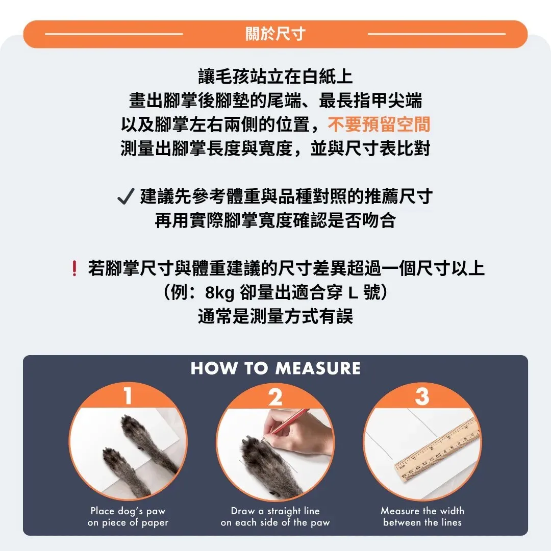 ✓ 保護腳掌免受地面危險物刺傷、螞蟻叮咬、防雨
