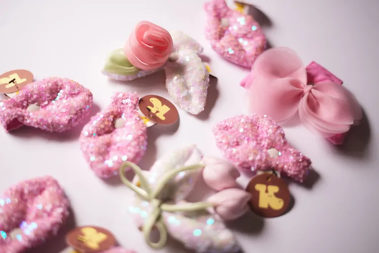 HIKOINU | 韓國胸背飾品 - 粉紅亮片葉子